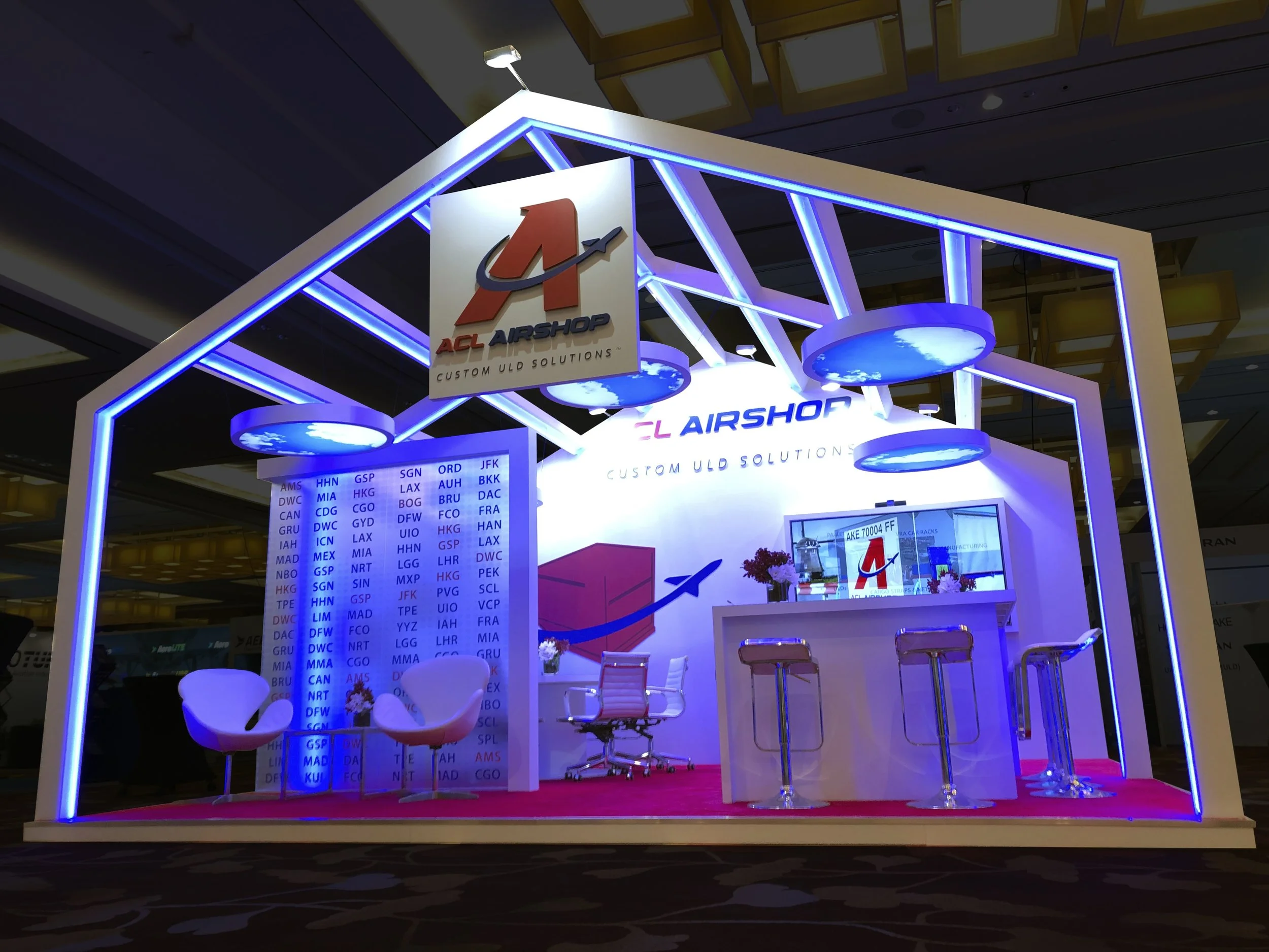 ACL Airshop in Singapore needed to make a presence. Working with a 30’ x 30’ space we created a beautiful space to meet with current and potential clients. Also giving private meeting space and ample storage space we made great use of the space. This design needed to be reconfigurable, which I was able to design it in a way to be repurposed to 20’ x 20’, 10’ x 20’ and even multiple 10’ x 10’ layouts.
